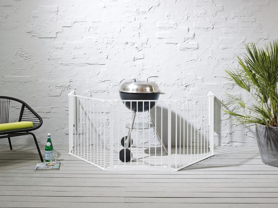 - Flex XL consta de una puerta que se puede abrir (72 cm), dos paneles de 72 cm de ancho, dos de 33 paneles de cm y soportes de pared.