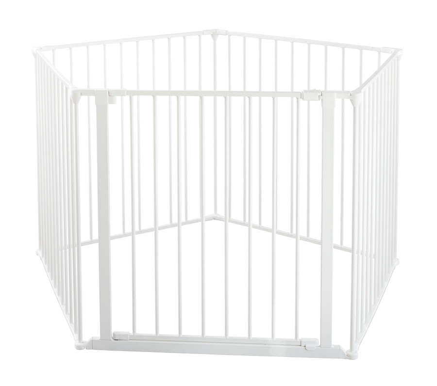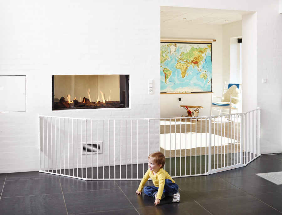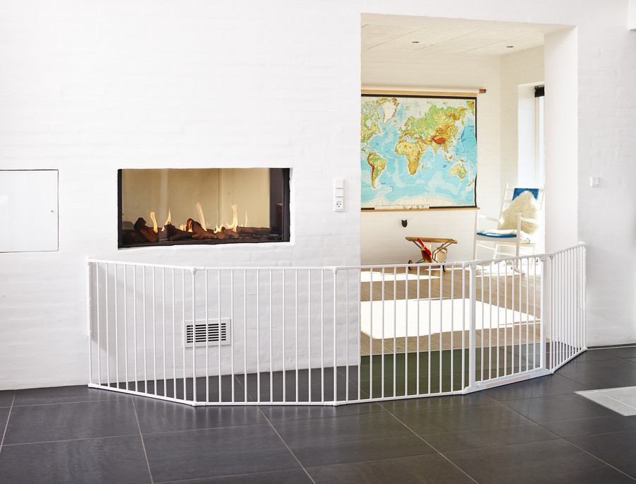 Flex XXL consta de una puerta que se puede abrir (72 cm), cinco paneles de 72 cm de ancho y soportes de pared. La puerta y los paneles se pueden alinear en cada combinación y ángulo. Se puede actualizar con un número ilimitado de paneles (33 cm y 72 cm de ancho disponibles). Se puede actualizar con un número ilimitado de puertas (72 cm de ancho). Flex XXL se puede utilizar para proteger escaleras o pasillos anchos. Se puede utilizar para pasillos de 90 a 350 cm de ancho. Se cierra y abre fácilmente con una mano. Excepcionalmente fácil de montar y desmontar. Cuando los soportes de pared están fijos, el montaje y desmontaje tarda unos segundos. Requiere perforación (¡no hay tacos en el juego!). Plegable para reducir el espacio necesario cuando no está en uso. 71 cm de altura. Apto para niños de hasta 2 años. Cumple directiva europea de seguridad EN 1930:2011 Fabricado en Dinamarca 2 años de garantía