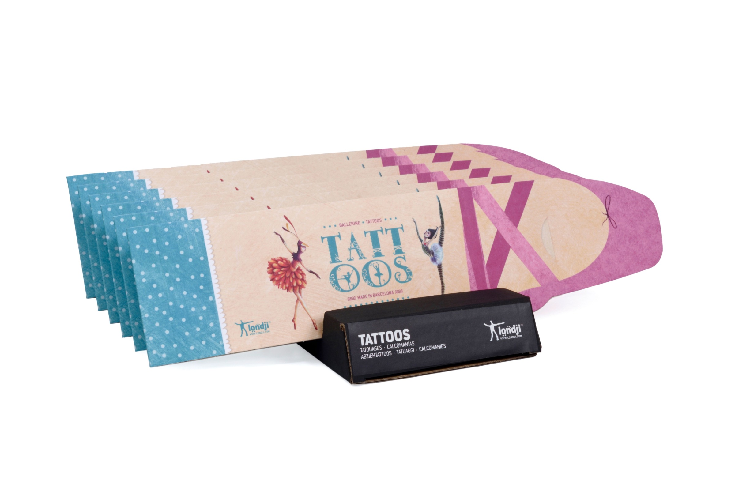 10 tatuajes temporales de bailarines y bailarinas haciendo ballet para decorar diferentes partes del cuerpo. Fabricado en Barcelona, de proximidad.