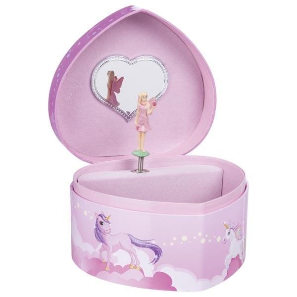 ¿Dónde mejor guardar las joyas infantiles que en esta caja de joyería de unicornio con una caja de música? El unicornio puede ser una criatura mítica, pero en este diseño de caja de joyería, cobra vida de manera fantástica con la melodía de "Para Elisa" de Beethoven. El hada baila con gracia frente al espejo en forma de corazón. El mecanismo de la caja de música te permite vivir muchos momentos hermosos. Este cofre del tesoro será útil para cualquier joven dama. Puedes guardar horquillas, bandas para el cabello, cintas o incluso pendientes y anillos en él.