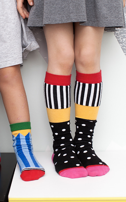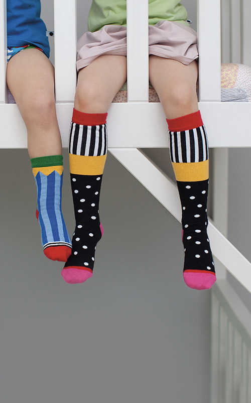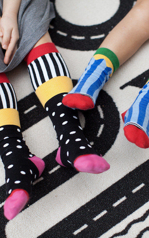 Coloured stripes, black and white polka dot a real circus on our socks!