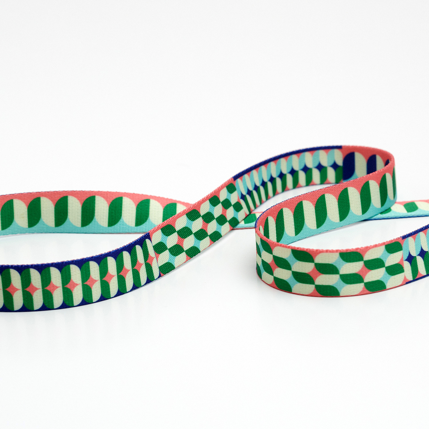 El material básico que utilizamos en la fabricación de todas las correas, collares y arneses es la cinta de polipropileno. Es un material perfectamente adecuado para este tipo de producto: extremadamente ligero, agradable al tacto, pero duradero y resistente a los daños y la suciedad. La cinta está impresa a doble cara mediante sublimación con nuestros patrones exclusivos. Este método de impresión implica alta presión y temperatura, lo que hace que los gráficos sean una “parte integral” de la cinta. Por lo tanto, no tienes que preocuparte por perder el patrón durante el lavado o el uso en condiciones desafiantes.