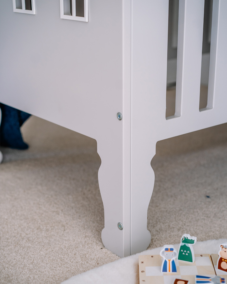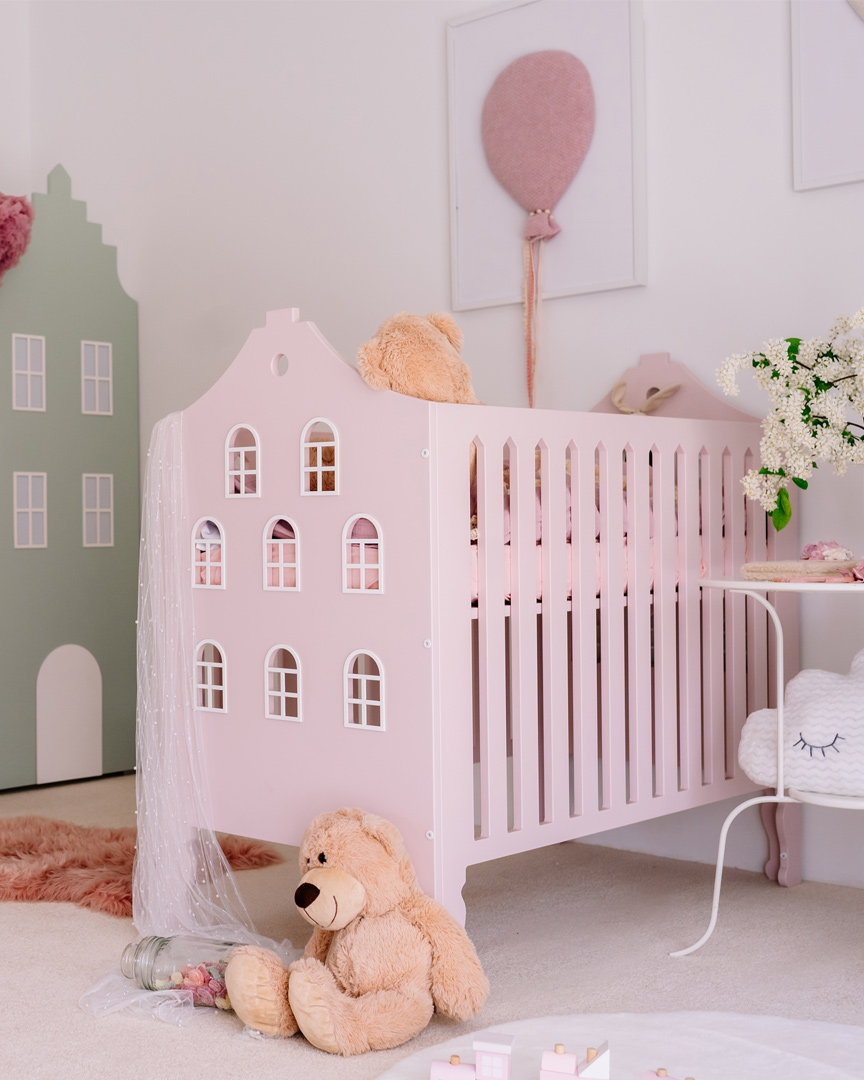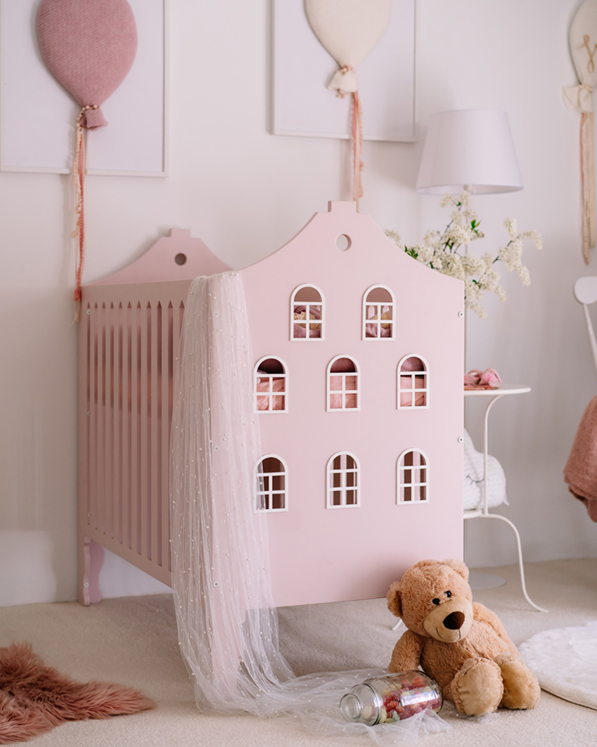 Esta hermosa cuna en forma de casita, hecha de MDF ecológico y madera de pino segura, ofrece tres niveles de ajuste para adaptarse al crecimiento del niño. Añade un toque de cuento de hadas a la habitación y despierta la imaginación del pequeño, disponible en cinco colores pastel.