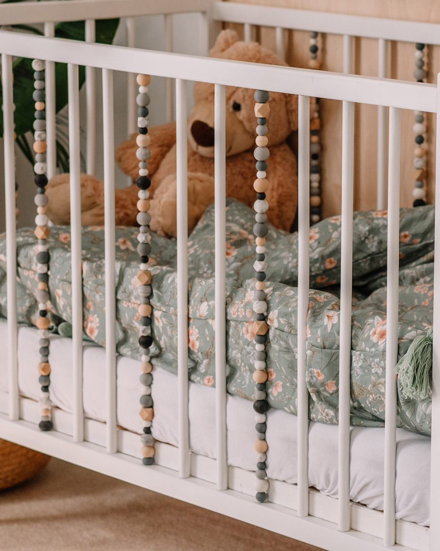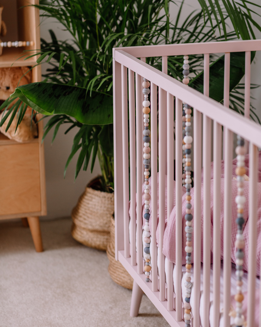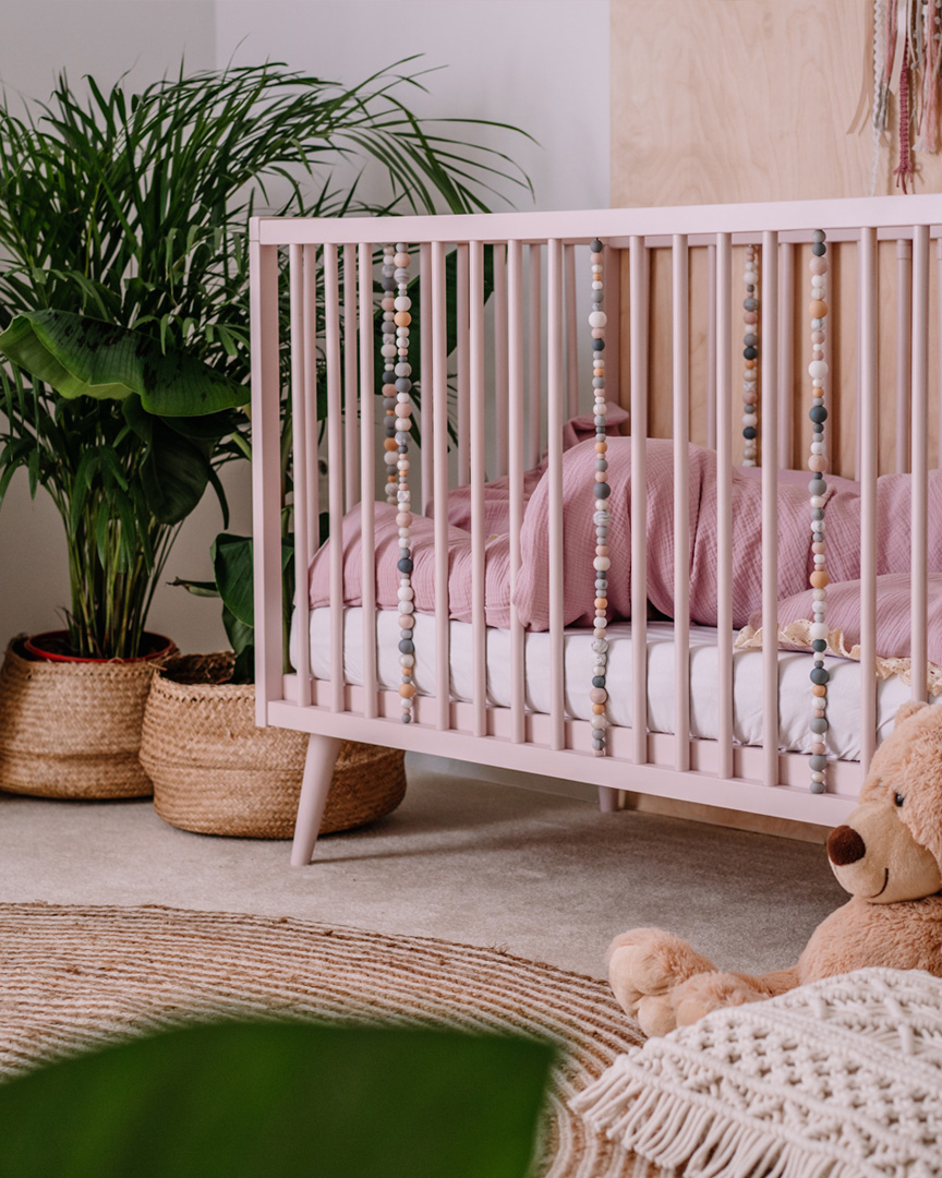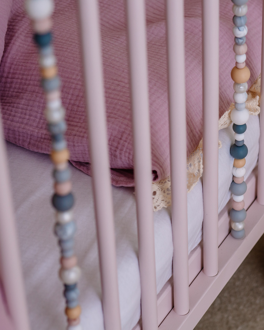 La cuna está decorada con un conjunto de bolitas sensoriales de madera y silicona, que apoyan el desarrollo del niño estimulando su sentido del tacto y la vista. Es la adición perfecta tanto para la habitación de niñas como de niños, especialmente cuando se combina con otros muebles sensoriales de Domo Kids, como la cómoda y el estante, creando un diseño armonioso en la habitación infantil.