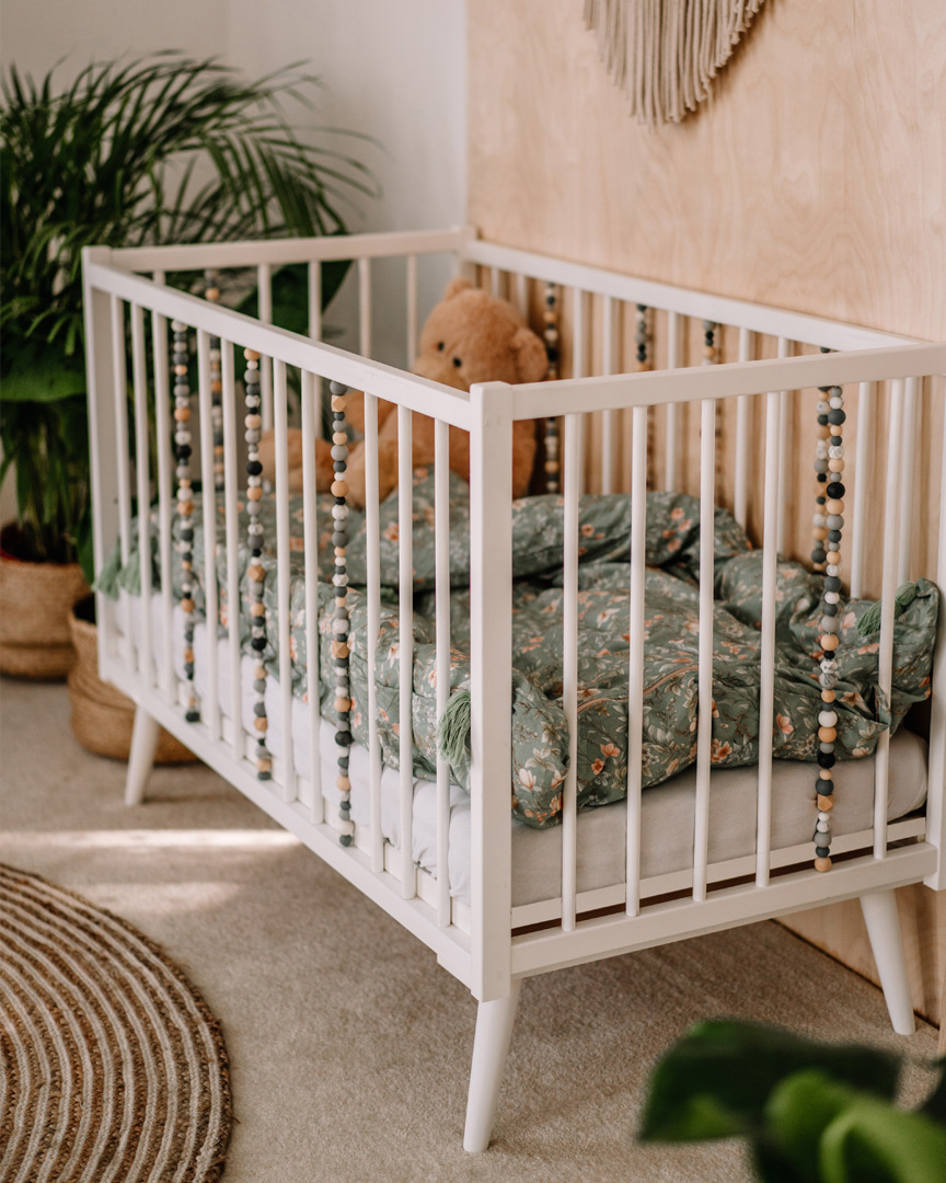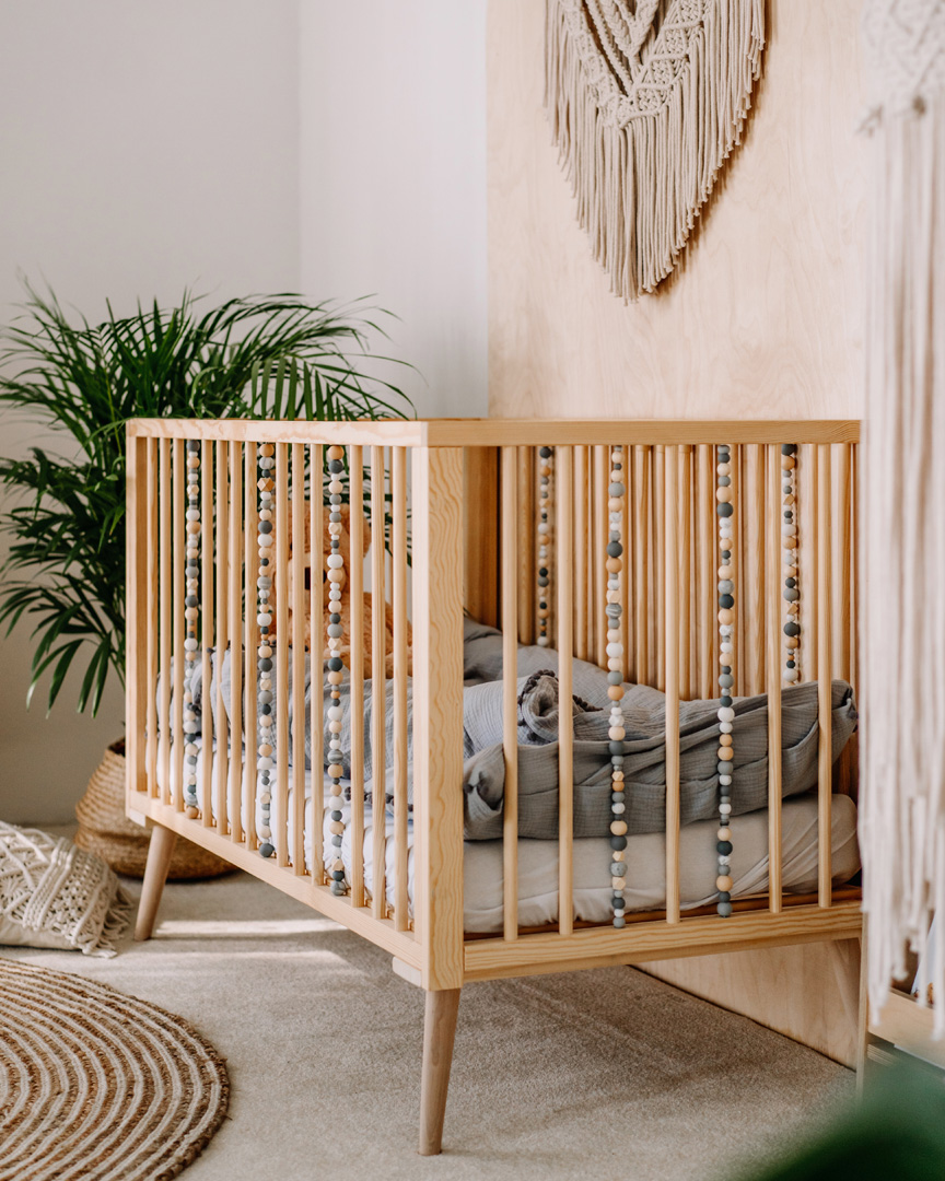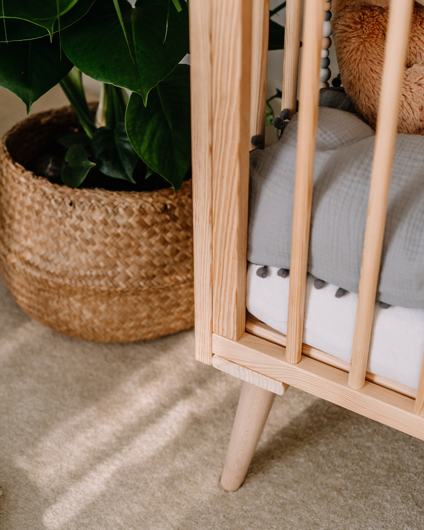 Además, la cuna cuenta con barrotes desmontables que permiten a los niños mayores subir y bajar de manera independiente, evitando su extracción accidental. Hecha completamente de madera natural, la cuna tiene un diseño sencillo y universal que se adapta a varios estilos de interiores, incluidos el boho y el escandinavo.