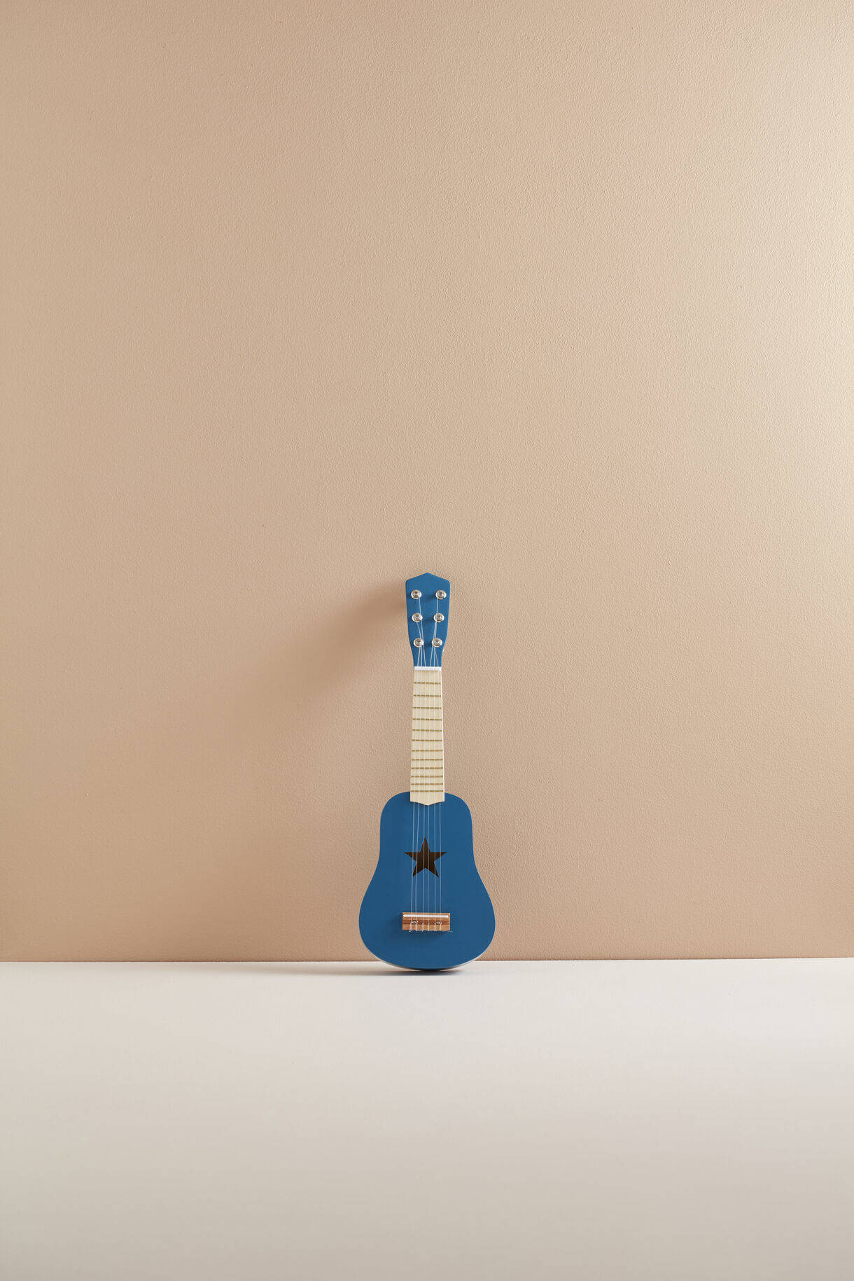 Guitarra de juguete de madera con recorte de estrella. A los niños les encanta tocar instrumentos y hacer sonidos ellos mismos. Esta guitarra también es un bonito elemento de diseño interior para la habitación de tu hijo o en cualquier lugar de la casa para darle un toque de color en lugar de un cojín o un cuadro. Las cuerdas se pueden estirar como en una guitarra normal. Perfecto como juguete para niños amantes de la música o para ayudar a despertar el interés por la música. ¿Por qué no formar una banda de rock para niños?