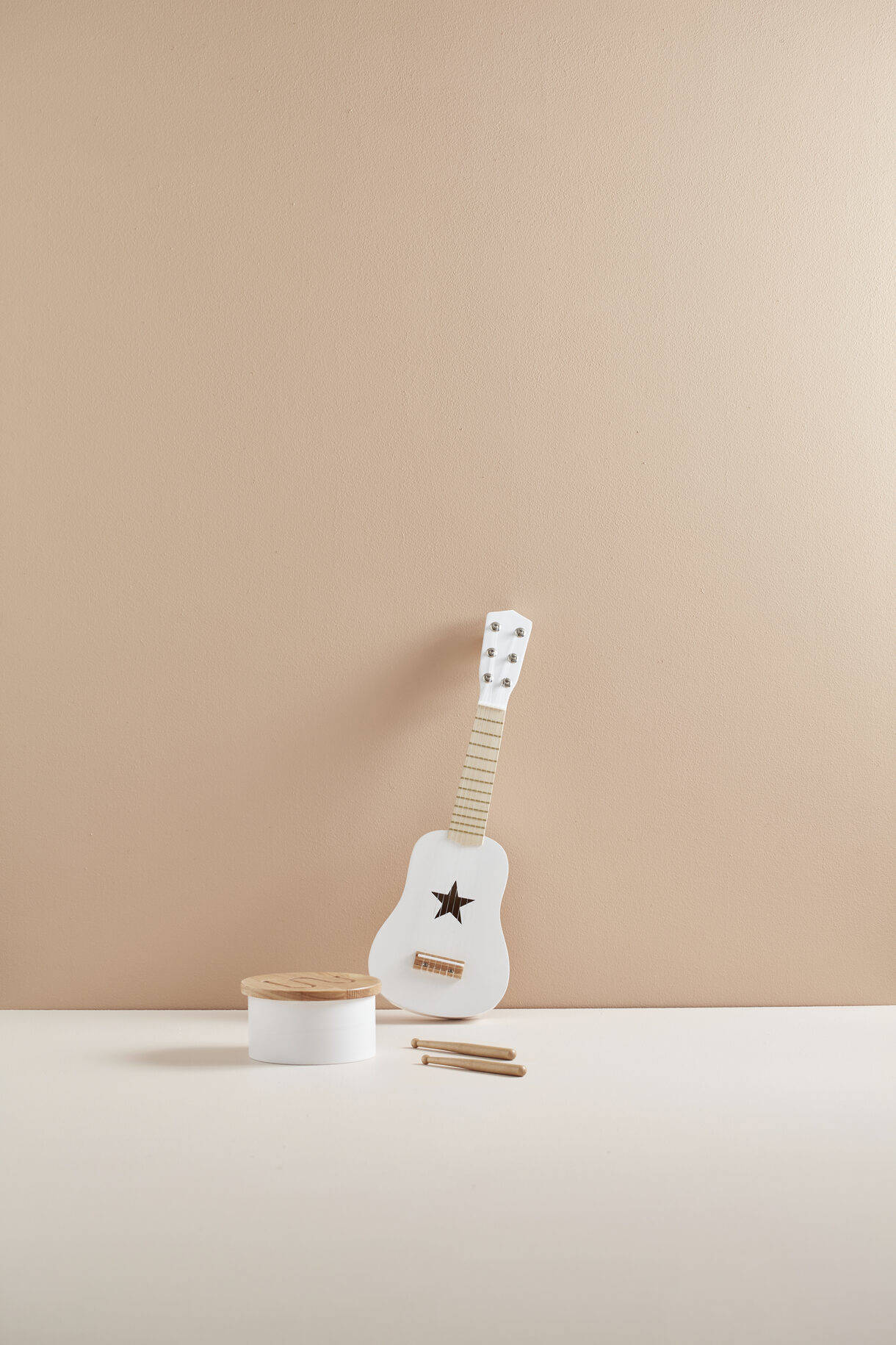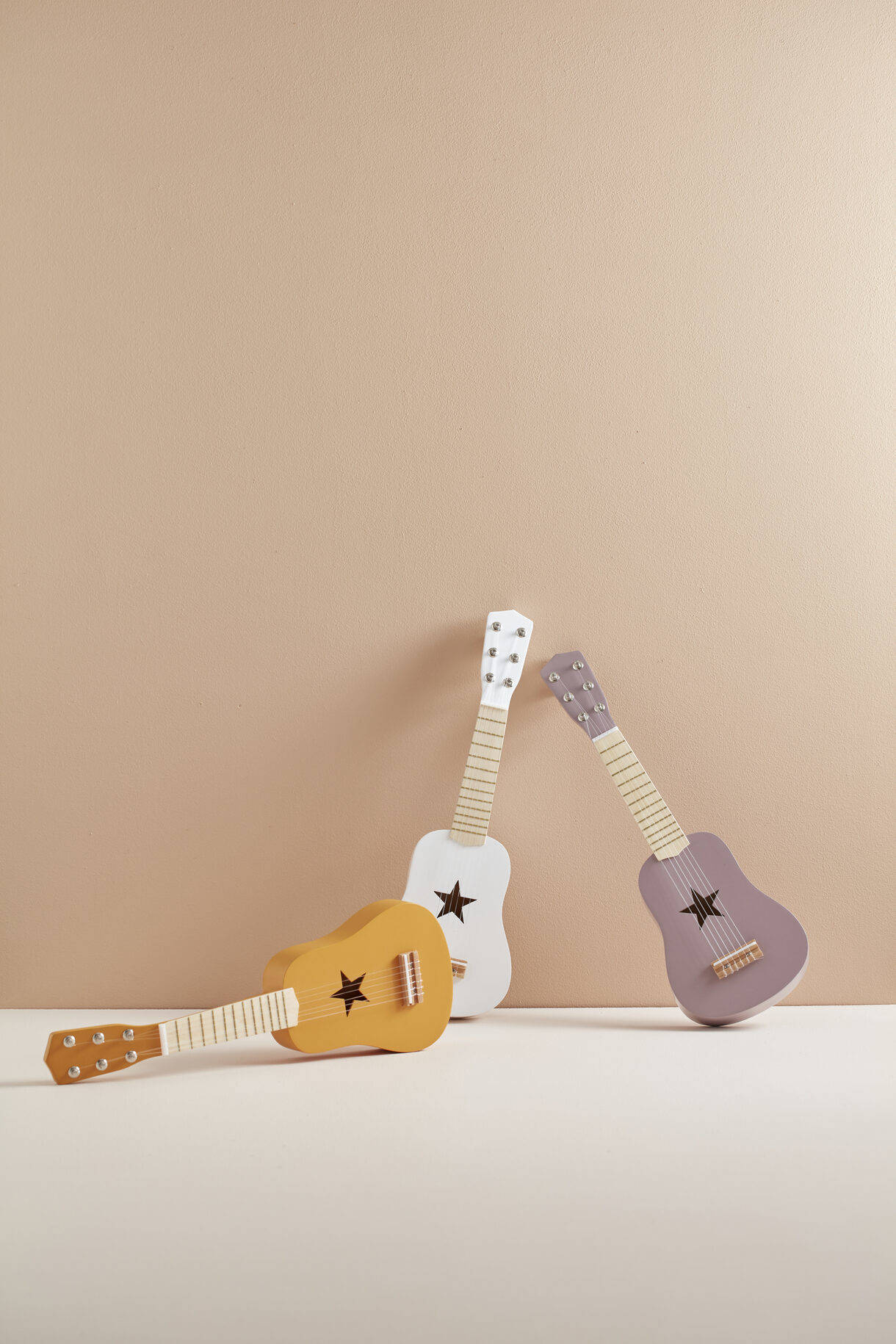 Guitarra de juguete de madera con recorte de estrella. A los niños les encanta tocar instrumentos y hacer sonidos ellos mismos. Esta guitarra también es un bonito elemento de diseño interior para la habitación de tu hijo o en cualquier lugar de la casa para darle un toque de color en lugar de un cojín o un cuadro. Las cuerdas se pueden estirar como en una guitarra normal. Perfecto como juguete para niños amantes de la música o para ayudar a despertar el interés por la música. ¿Por qué no formar una banda de rock para niños?