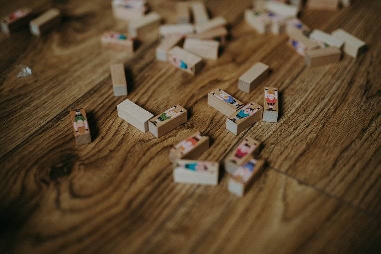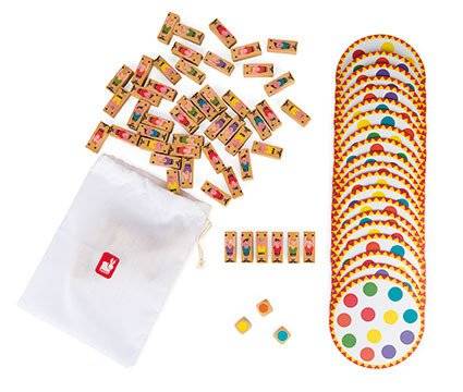 ARTÍCULOS : 20 tableros de cartón + 57 figuras de acróbatas de madera + 3 cubos de madera