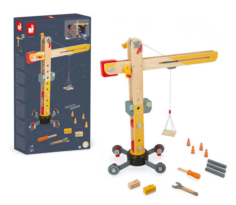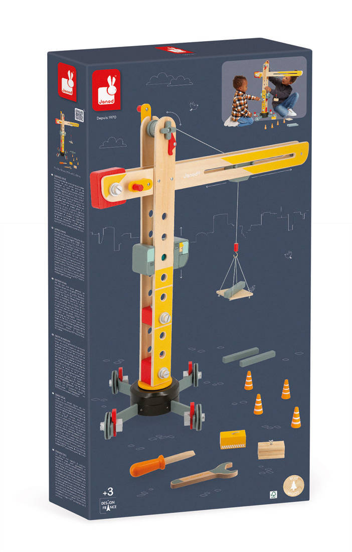 Janod - Gran grúa plegable de madera con herramientas 3+