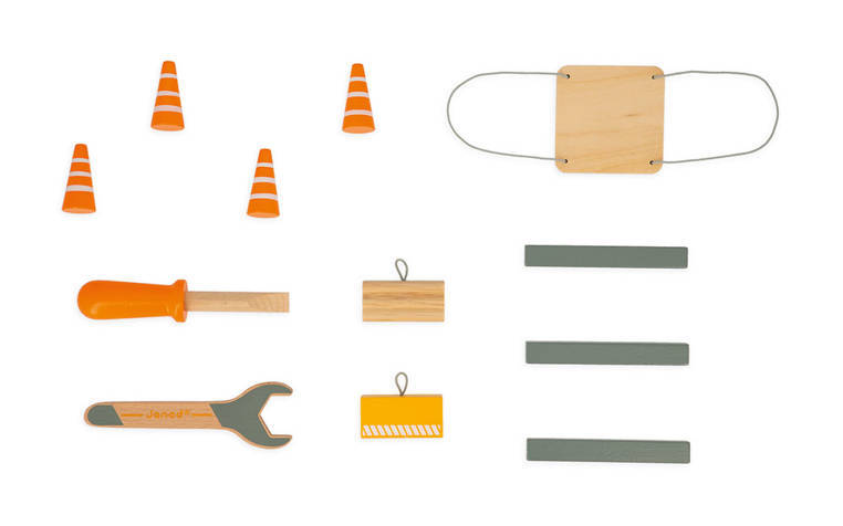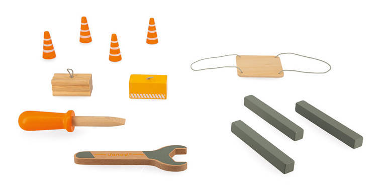 edad: 3 años + número de elementos: 1 grúa + 4 conos + 2 herramientas + 6 elementos portadoresmaterial: madera FSC