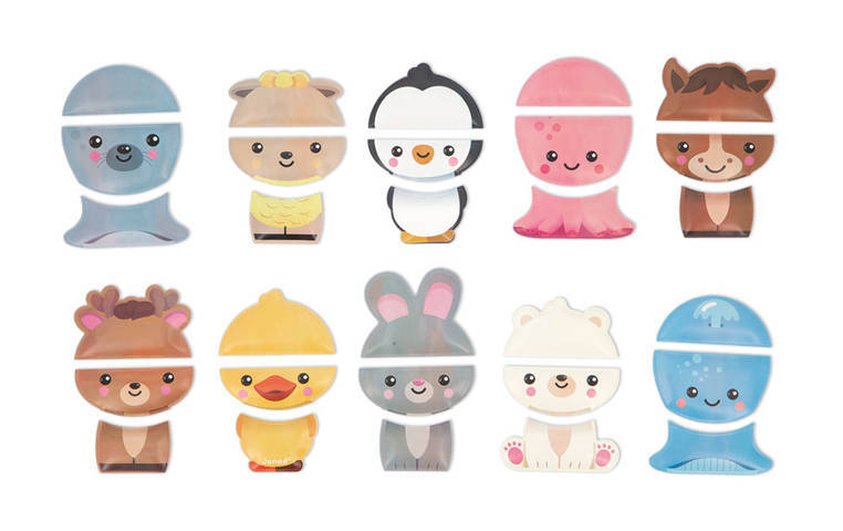 Puzzle Mix and Match Los animales de la marca francesa JANOD están destinados a la diversión del baño. Se compone de 30 prácticos elementos de espuma que, una vez colocados, forman 10 animales de 3 partes (parte superior de la cabeza, boca y torso), entre ellos un pingüino, un patito, una foca, un pulpo, un cordero o un oso polar. Este juguete es la manera perfecta de reducir el tiempo que se pasa en la bañera. Diseñado en Francia. Embalado en una caja estética con asa. Perfecto para regalo.