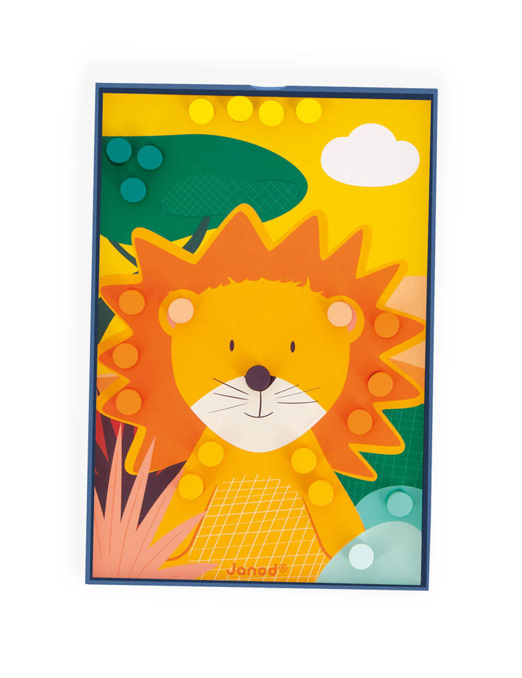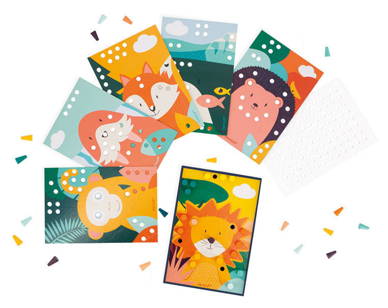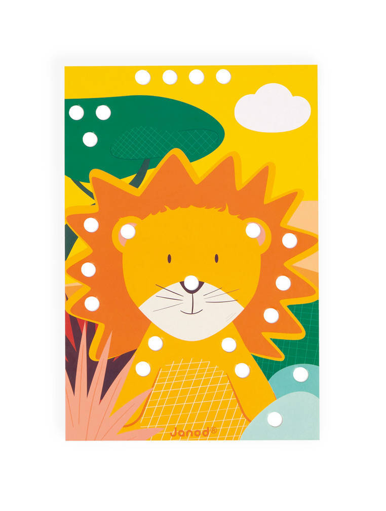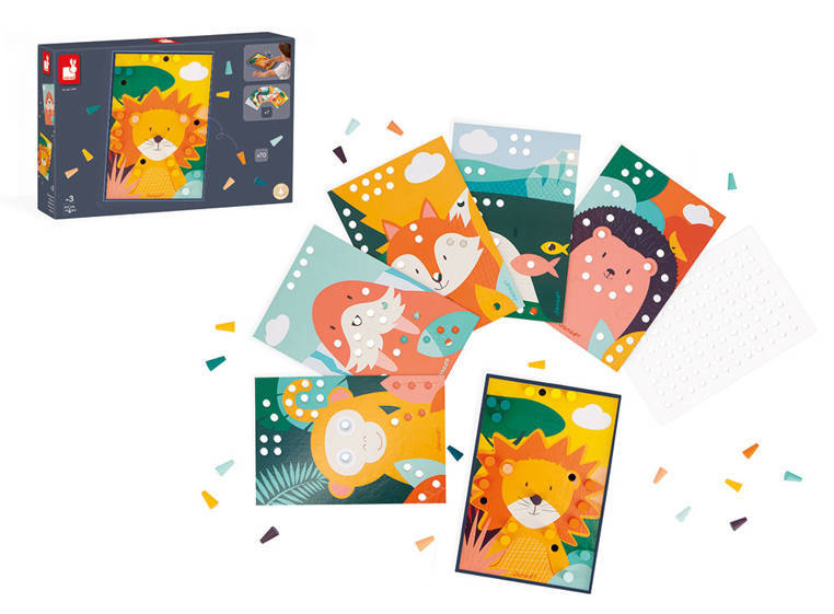 ¡Todo un mundo de color! ¡Con estos bonitos dibujos y mosaicos de madera, los niños a partir de 3 años desarrollarán la motricidad fina y la destreza mientras aprenden los colores! Tarjetas contemporáneas de colores suaves donde los niños pueden colocar las piezas de madera en el lugar correcto y dar vida a los lindos animales de las tarjetas. Zorro, erizo, mono... ¡Todos están esperando a ser decorados! Este juego es ideal para pasar un rato tranquilo con los niños. Las piezas han sido diseñadas para manos pequeñas (1,5 cm de diámetro), para un fácil agarre. Inteligente: la caja sirve como soporte para las tarjetas, solo hay que colocarlas y decorarlas. ¡Una actividad creativa y divertida, donde los niños aprenderán los nombres de los animales, los colores y también diferentes tonalidades! No se necesita pegamento, es una actividad que los niños disfrutarán haciendo una y otra vez. Este juego contiene: 7 tarjetas perforadas de cartón y 70 piezas de madera.