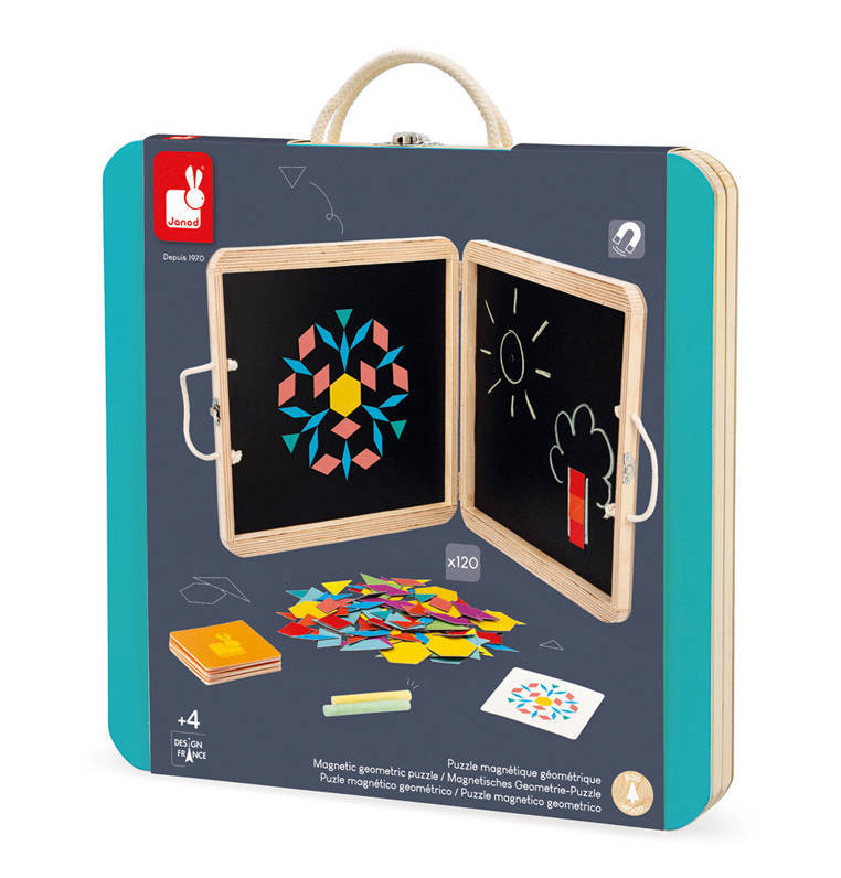 Janod - Rompecabezas magnético en caja de madera Figuras geométricas 3+