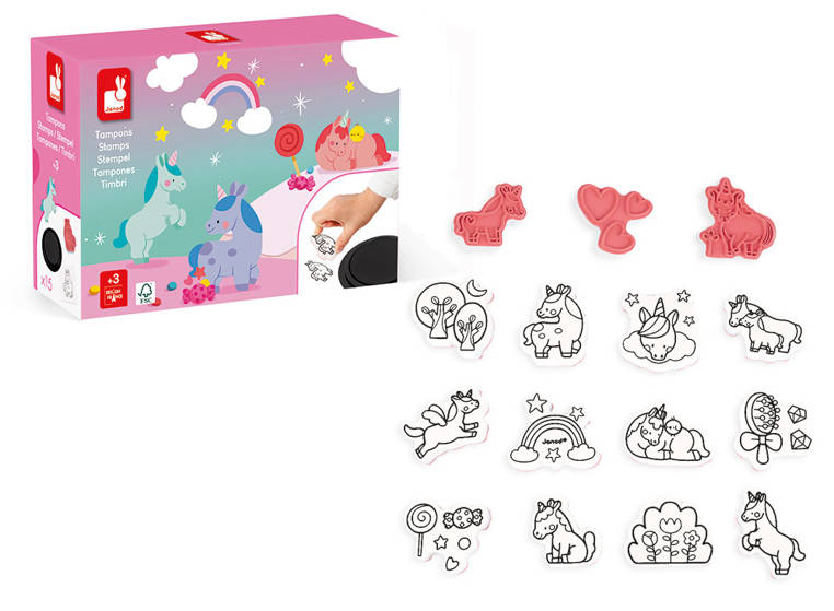 Janod - Set creativo Sellos Unicornio 3+