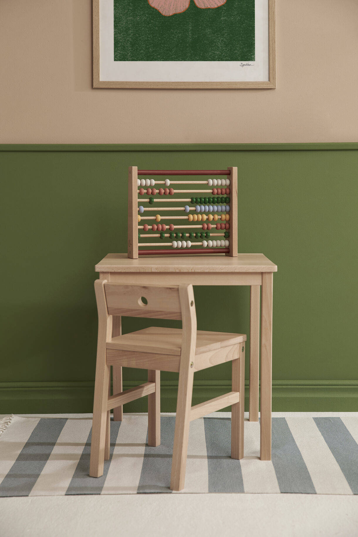 Los juguetes de madera de la colección Carl Larsson de Kid's Concept son tan relevantes hoy como lo eran a principios del siglo XIX. Un ábaco de madera con ocho filas y diez cuentas por fila. Este popular juguete tiene colores inspirados en la casa del famoso diseñador sueco Carl Larsson. En el lateral, verás el logotipo de CL grabado a fuego y todo está hecho de madera con certificación FSC.