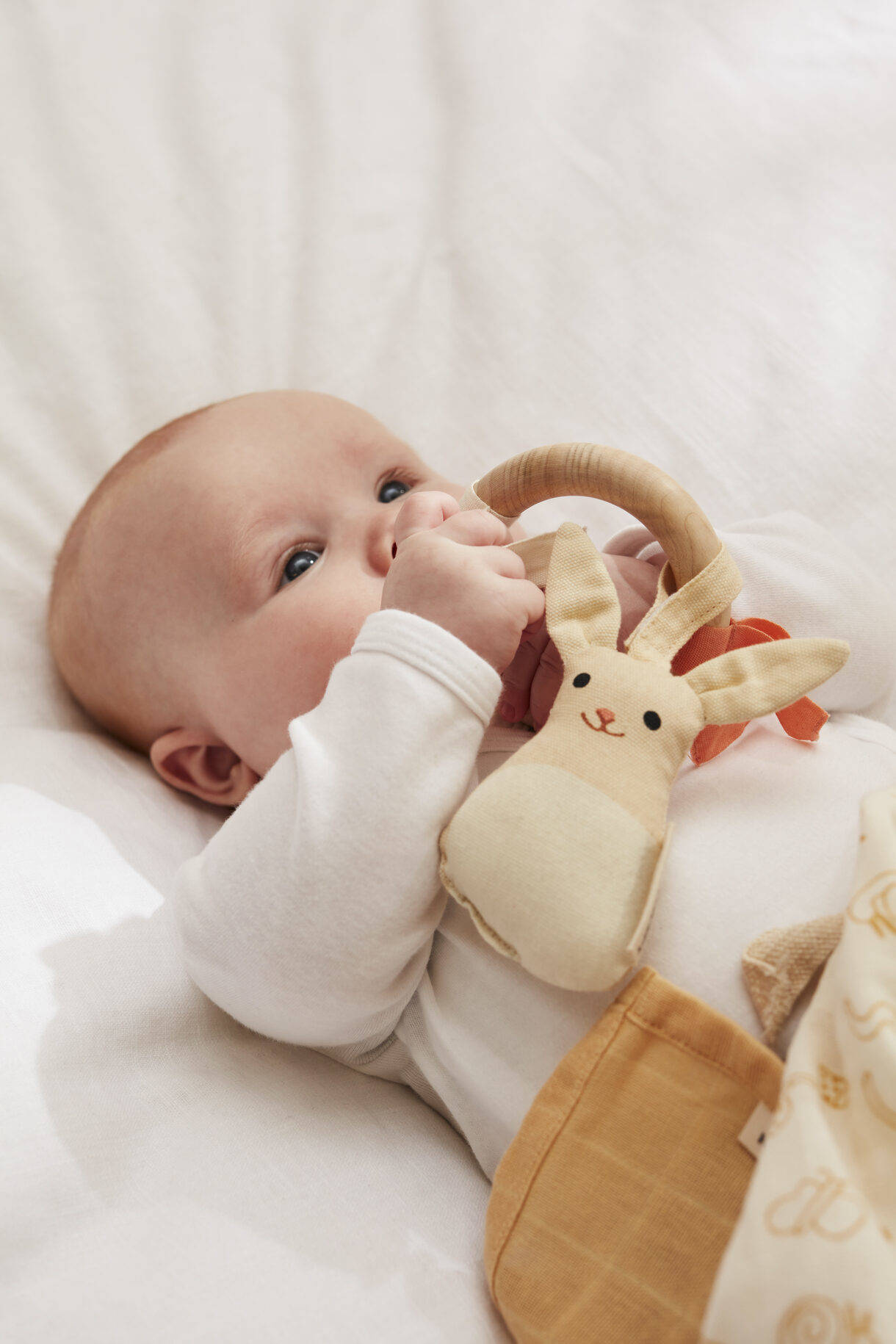 Es fácil quitar el pequeño juguete de peluche con el velcro adjunto y acompañarlo durante el paseo. Un anillo de mordida, agarre y actividad de madera en haya certificada FSC donde el conejo Lu cuelga entre sí a través de cintas textiles, diseñado para entretener y estimular las habilidades sensoriales del bebé. Diferentes superficies táctiles activan los sentidos táctiles del bebé. Fácil de quitar el conejo con el velcro adjunto y llevarlo consigo para llevarlo a otro lugar, por ejemplo al cochecito, al cambiador o para usarlo como juguete de peluche. El anillo de actividades es un gran juguete cuando el bebé empieza a agarrar y le gusta sentir diferentes superficies y empieza a descubrir cosas por sí solo.