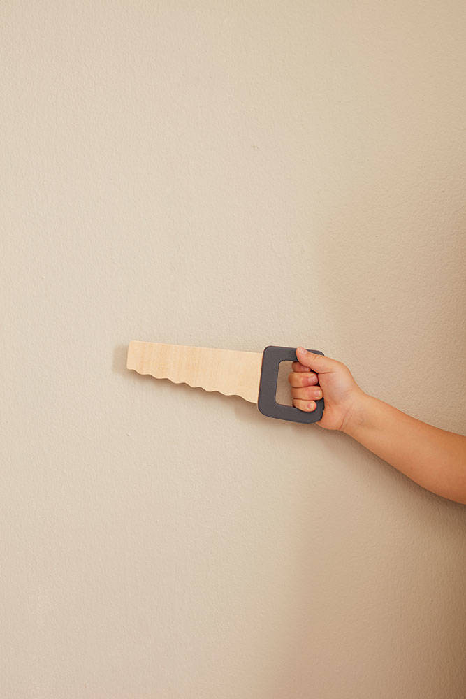 Con esta caja de herramientas para niños, nada es imposible. La caja está hecha completamente de madera y tiene hermosas uniones en cola de milano, lo que la hace extremadamente duradera sin necesidad de tornillos. En la caja de herramientas encontrarás clavos y tornillos para juguetes. En el lado corto de la caja hay elegantes orificios con roscas donde puedes atornillar tus tornillos y fijarlos con tuercas como un verdadero carpintero. En el lado largo hay agujeros que son excelentes para las uñas. ¿O por qué no construir una forma fascinante con las placas de construcción? Pero ¿qué sería del pequeño carpintero sin herramientas de juguete? Por supuesto, encontrará un martillo, una llave, una sierra y un destornillador en madera con certificación FSC. Todo para que pueda usarse durante generaciones.