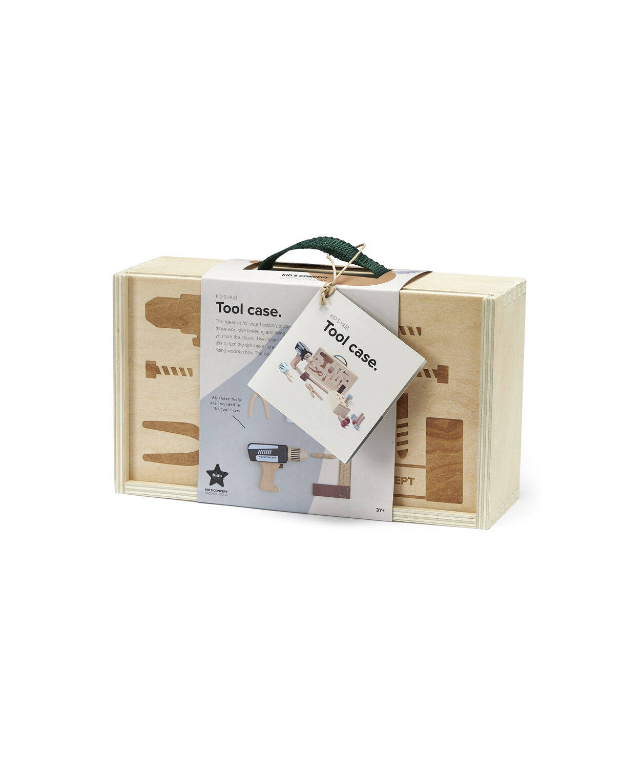 Aquí tienes el kit perfecto para el pequeño constructor de casa. Un maletín de herramientas fabricado en madera con certificación FSC y uniones en cola de milano con todo para los niños a los que les encanta atornillar y arreglar cosas. Suena "clic-clic" cuando gira el portabrocas. Cambiando las puntas podrás transformarlo de taladro en destornillador en cualquier momento. El kit también contiene tornillos de juguete que vienen en una caja de madera con roscas en la parte inferior donde puedes fijar los tornillos. También puedes utilizar el destornillador manual o unos alicates para las tareas de construcción más difíciles. Para que todo quede recto o si necesitas medir algo, hay, por supuesto, un cuadrado que puede arreglar el trabajo.