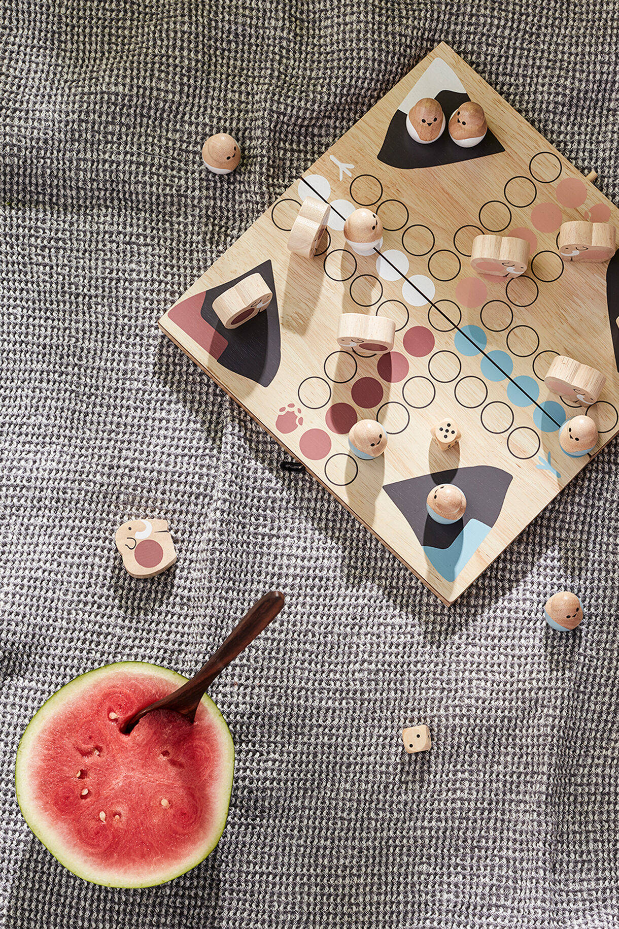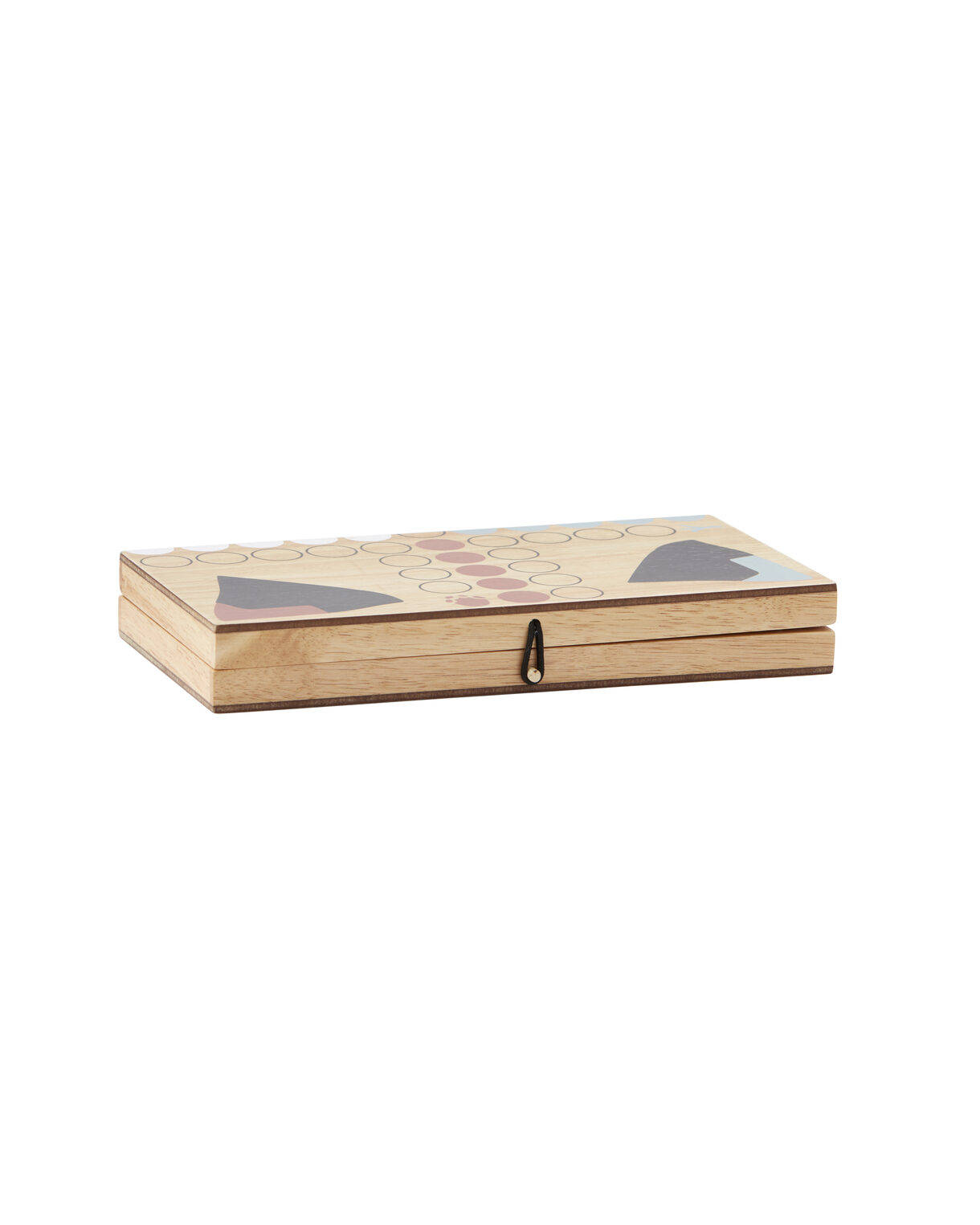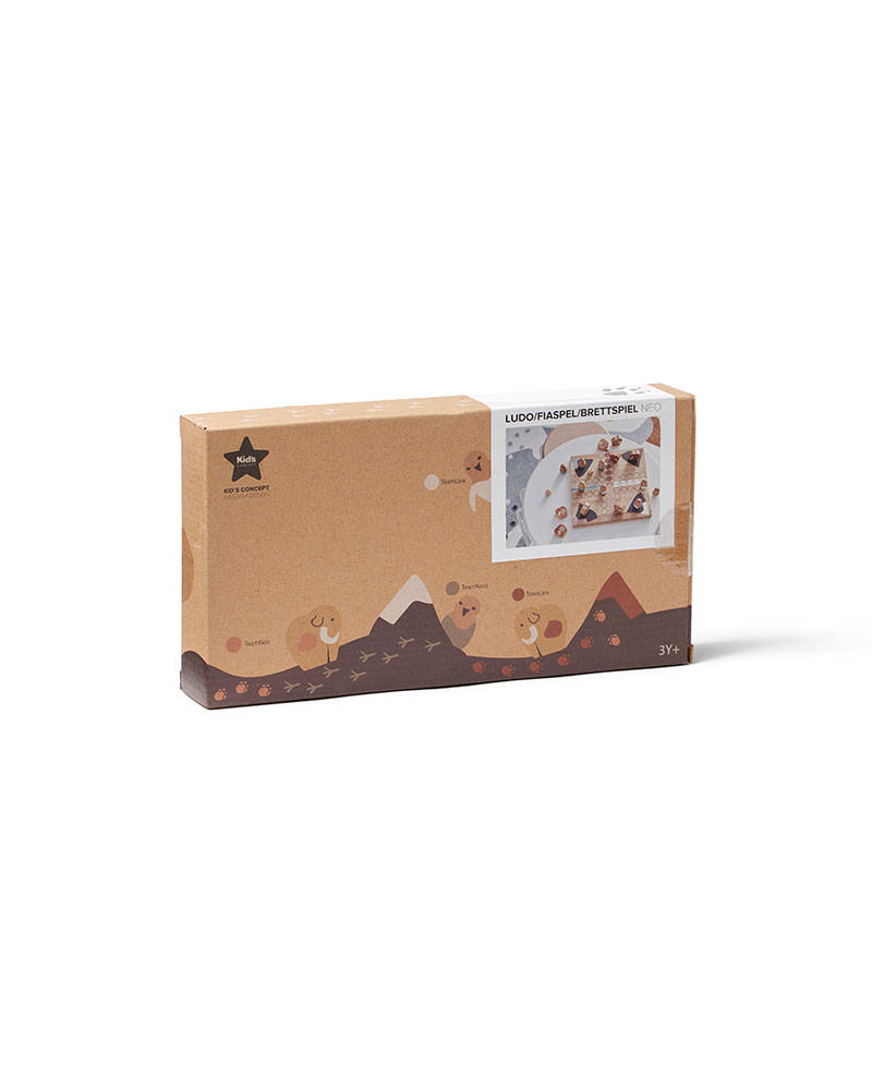 En el juego Ludo NEO Eliges entre cuatro figuras de madera diferentes del concepto NEO. El tablero se pliega por la mitad y crea una caja de almacenamiento para las piezas. También se incluyen instrucciones.