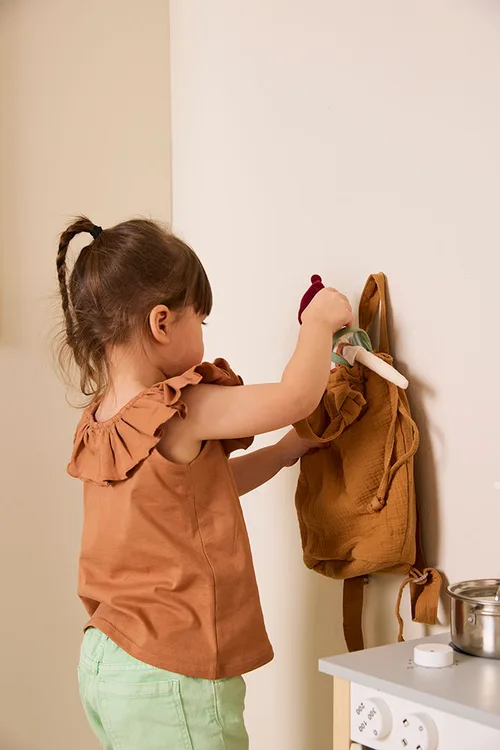 La ropa de la muñeca se puede quitar y poner. La muñeca puede utilizar las camas y cochecitos para muñecas Kid’s Concept. También puedes coser tu propia ropa para las muñecas Nils e Ingrid – Kid’s Concept. Escanea el código QR de la caja para descargar los patrones de la ropa.
