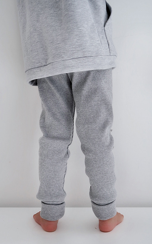 Comfortable leggings made of ribbed cotton knit.  Features wide welts on the ankles and waist.