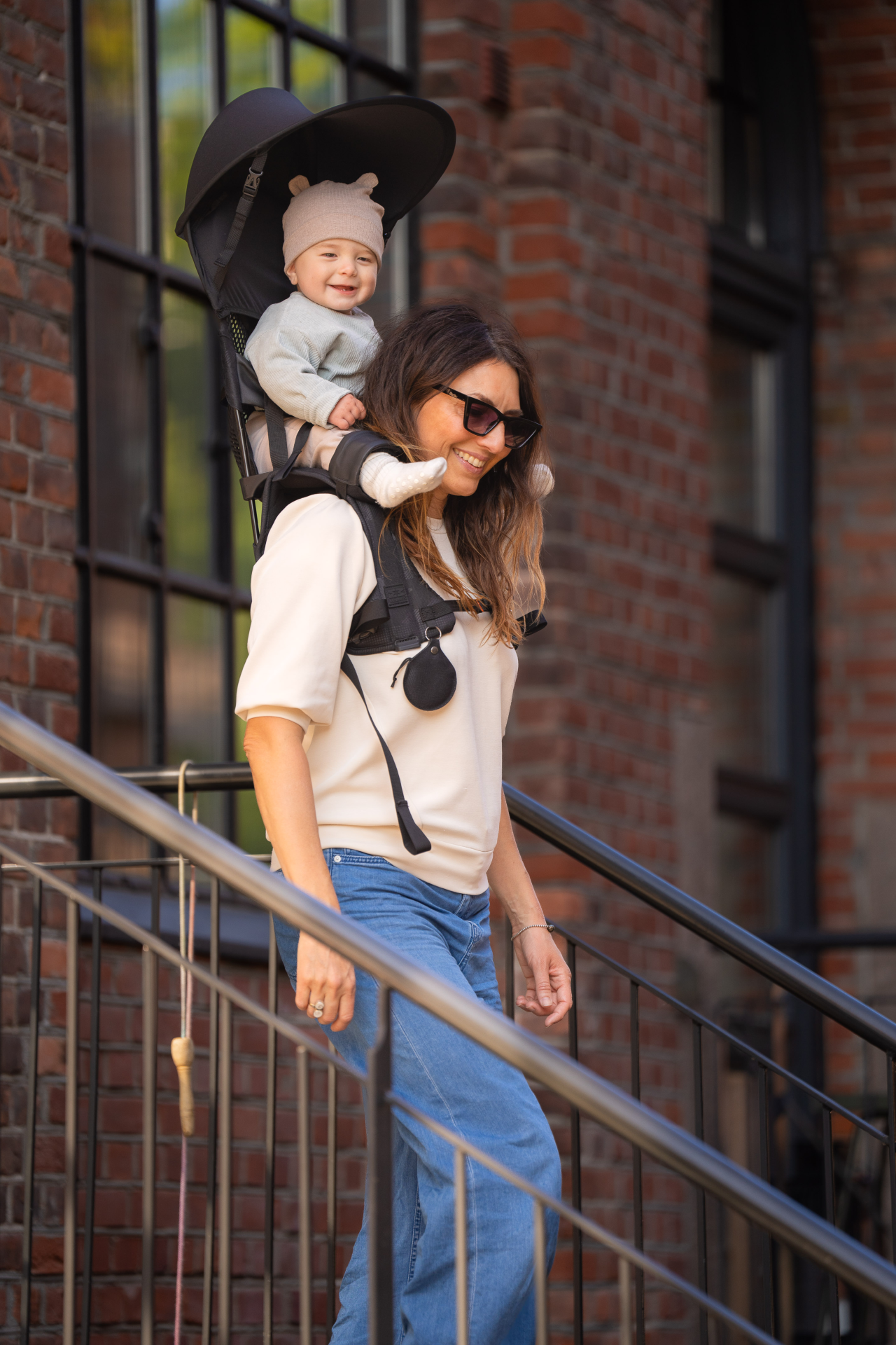 El Minimeis es una mochila bandolera galardonada. Escandinavo diseñado por papás noruegos. Hecho pensando en familias activas, urbanas y aventureras. Creamos el MiniMeis para que sea divertido, fácil y seguro emprender aventuras con su hijo.