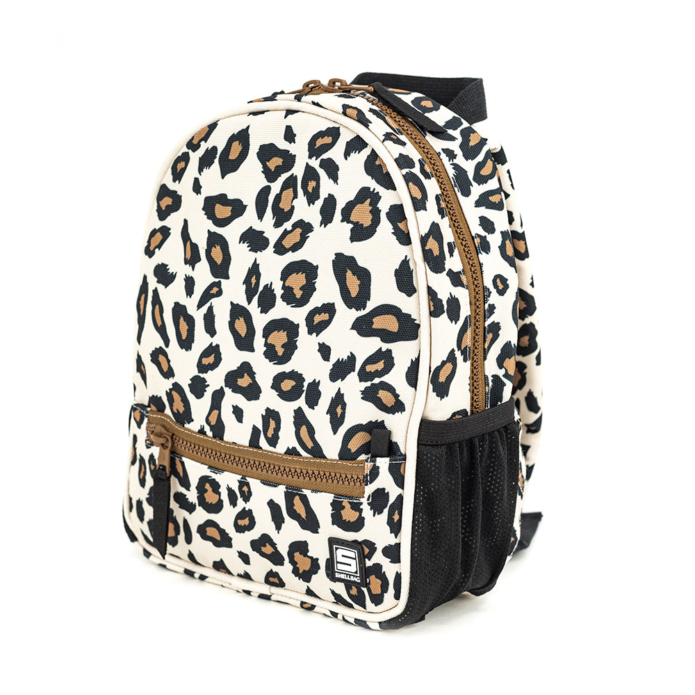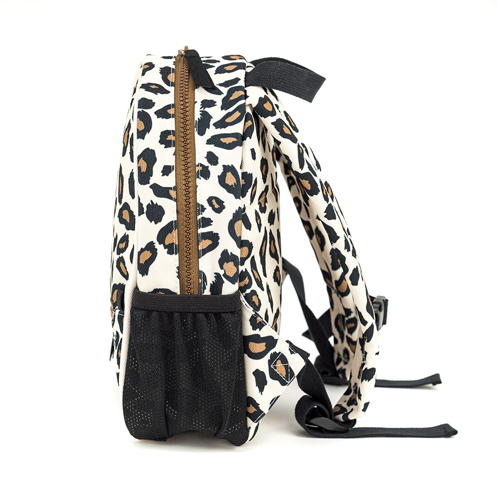 Mochila de niña con estampado de leopardo para guardería y viajes.