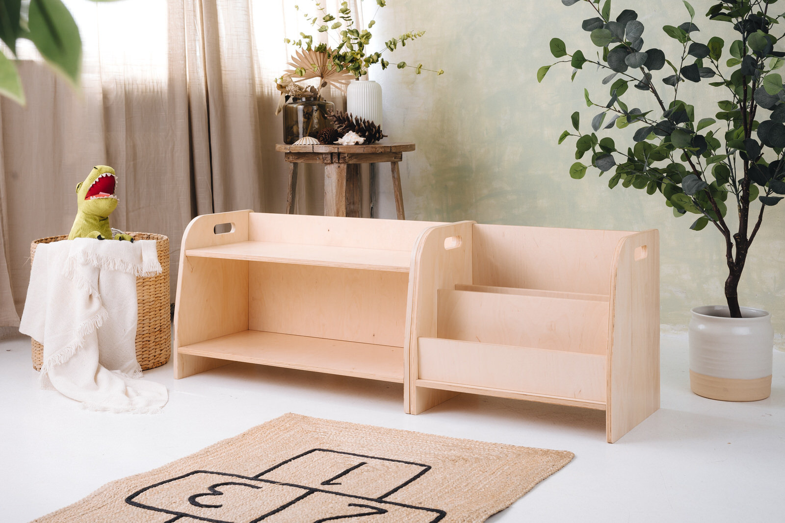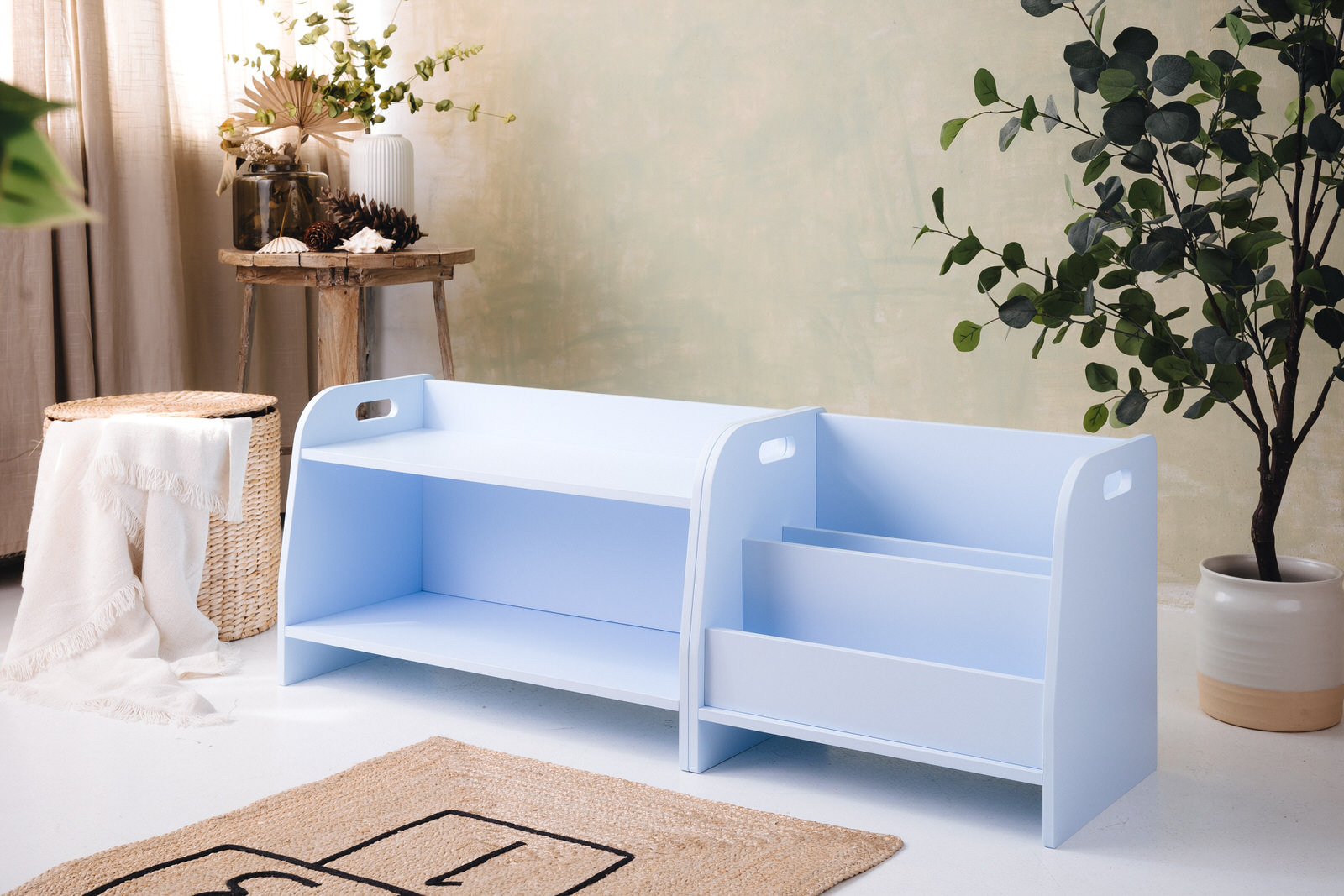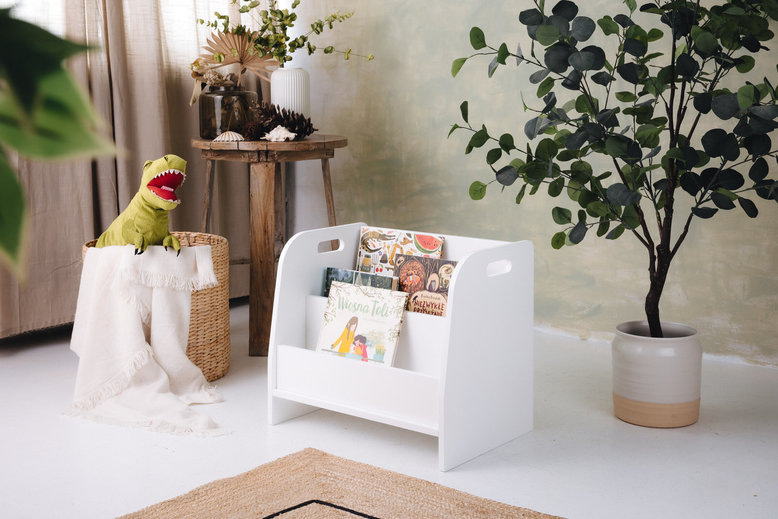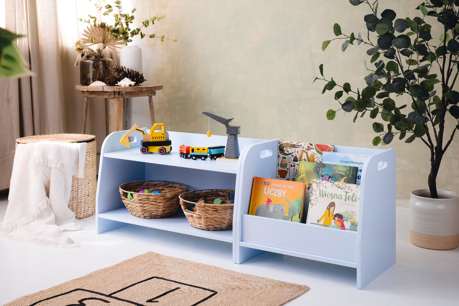 Una estantería infantil en forma de estante de libros abierto y transparente es la elección perfecta para los amantes de la armonía y la simplicidad en el diseño interior. Según los principios del método Montessori, este mueble está diseñado para apoyar el desarrollo de un niño. Incluso la forma en que se disponen los libros con sus portadas hacia adelante permite a los jóvenes lectores hacer elecciones reflexivas en su material de lectura. El acceso completo a los estantes y bolsillos desde el nivel del suelo no solo facilita el acceso a su libro elegido, sino que también los anima a devolverlo a su lugar, enseñando autodisciplina y cuidado de su propio espacio.