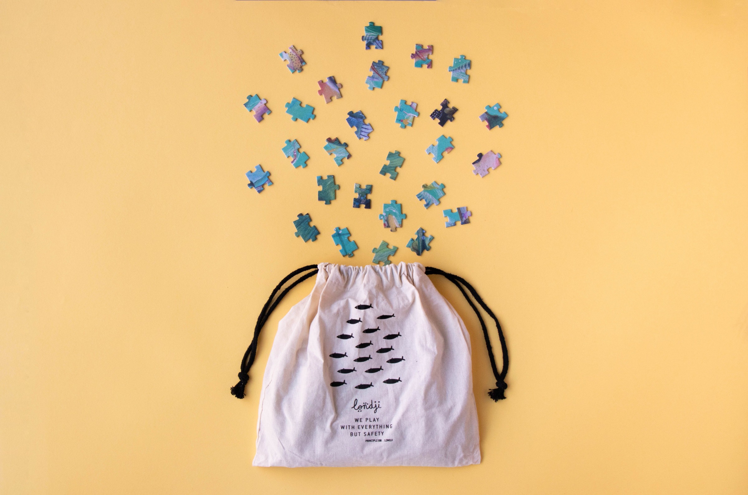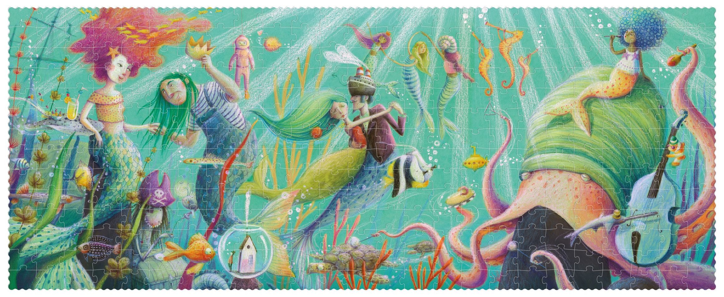 Un puzzle de 350 piezas, algunas con purpurina, para dejar volar la imaginación hacia mundos llenos de fantasía, para niñas y niños mayores de 8 años.