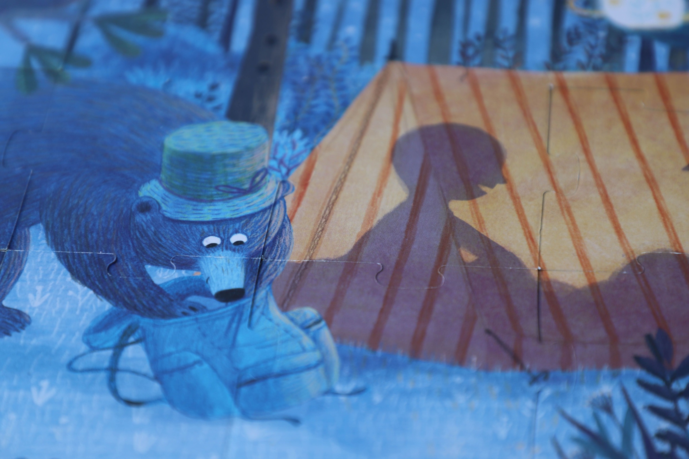 Un puzzle doble cara 54 piezas. En una cara tenemos el bosque durante el dia, en la otra descubriremos qué ocurre en el bosque mágico cuando oscurece.