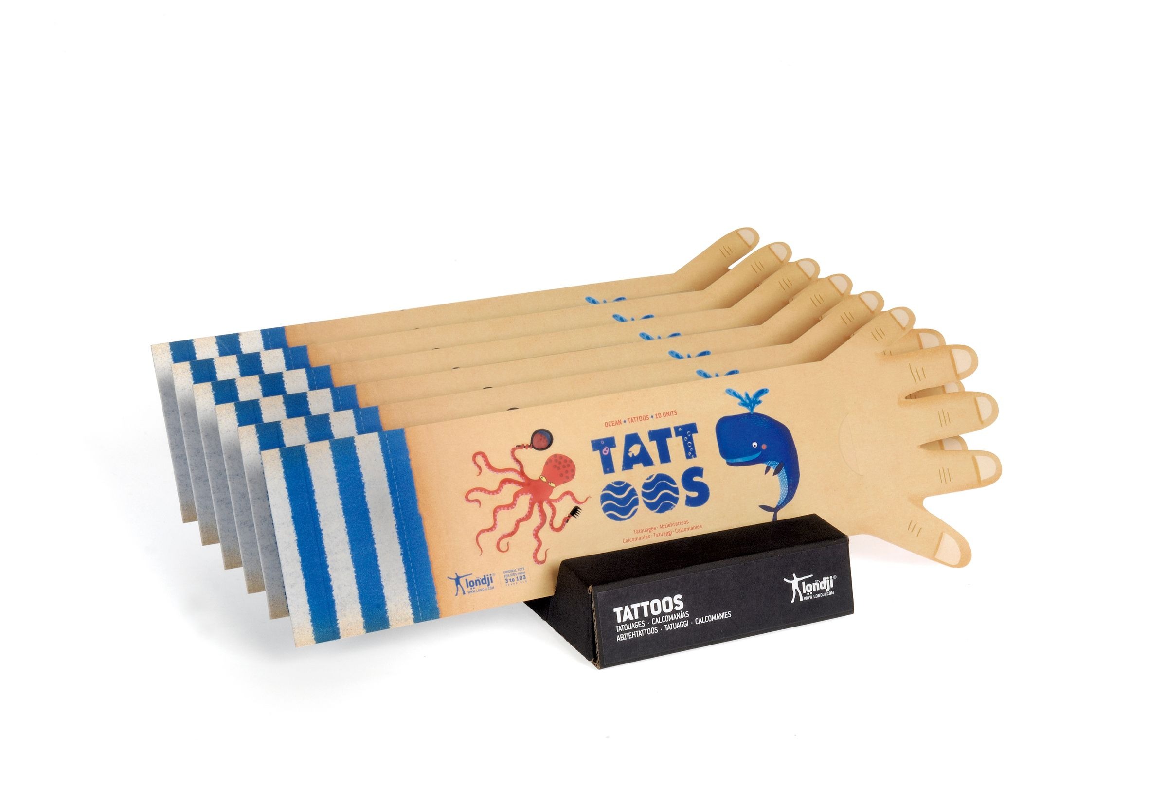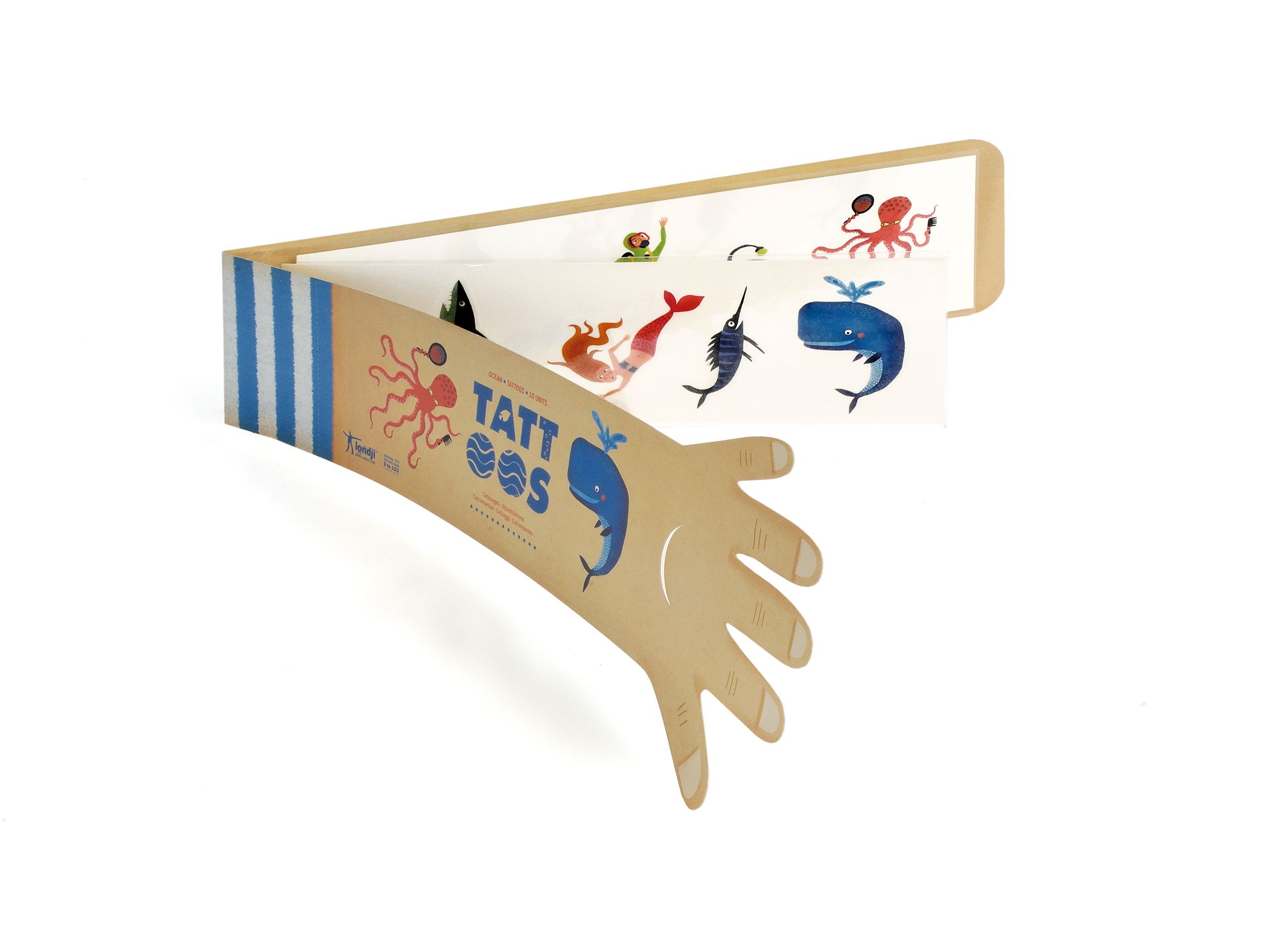 10 tatuajes infantiles temporales de animales del mar y criaturas del océano para aplicar sobre distintas partes del cuerpo. Ideal para regalar como detalle.