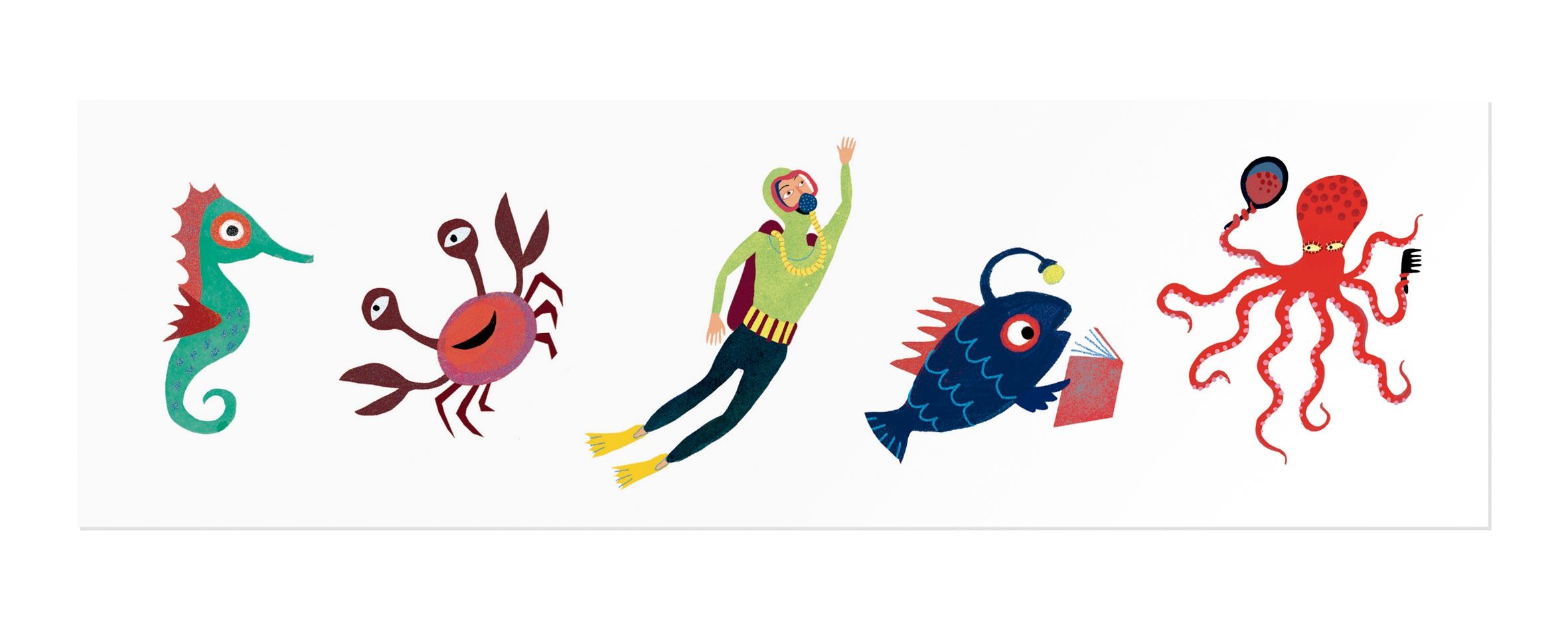 Peces, tiburones, cangrejos, pulpos, ballenas y sirenas, tenemos el placer de presentaros las fantásticas calcomanías del océano! Son seguras, no tóxicas, divertidas y hechas en Europa. Glub, glub, glub.